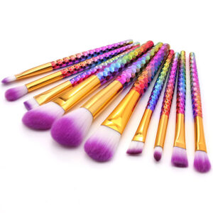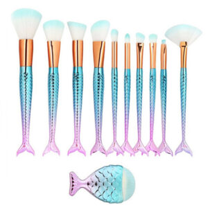 10pcs Colorful Mermaid Shaped Makeup Brushes (11136)